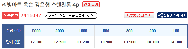 상품명 리빙아트 옥슨 깊은형 스텐찬통 4p